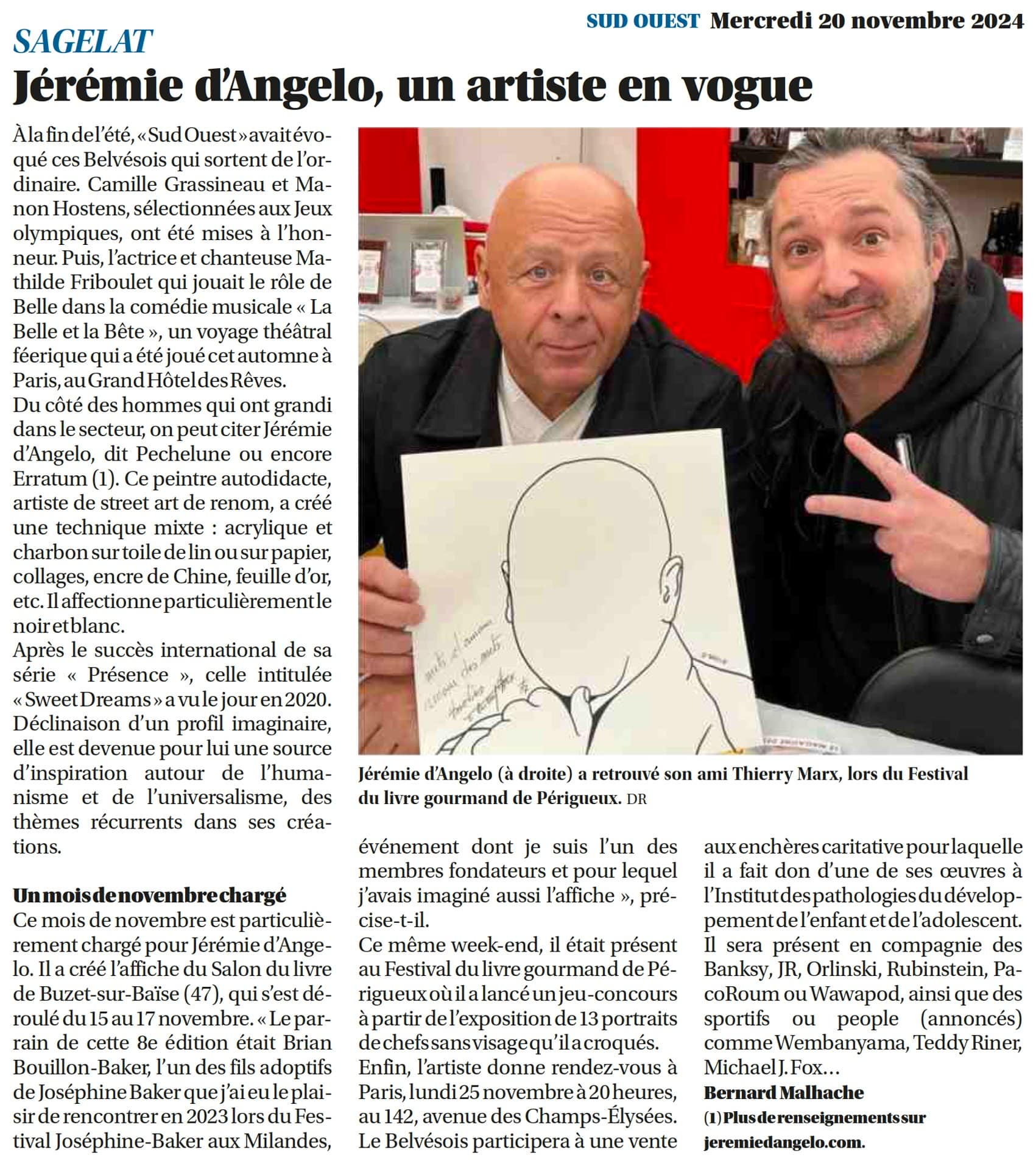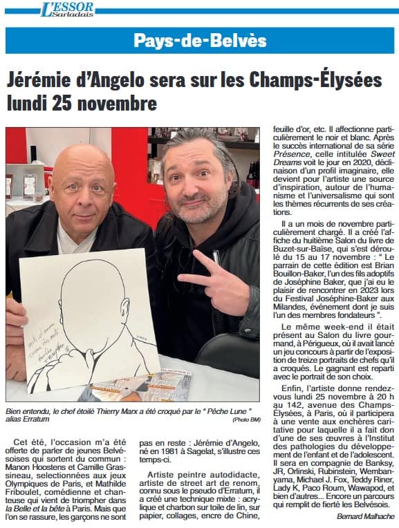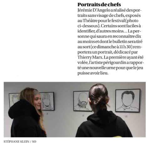 L’art minimal, ou minimalisme, est un mouvement artistique qui cherche à réduire au minimum, les éléments nécessaires à la compréhension du spectateur. Parti de New York dans les années 1960, il a séduit Jérémie d’Angelo qui en est aujourd’hui devenu un spécialiste ; il s’est spécialisé dans le portrait, avec une production quasi quotidienne que les adeptes d’Instagram se font un plaisir de découvrir. Comme tous les minimalistes, il recherche pureté et efficacité du trait ; un style épuré qui refuse la fausseté ou le lyrisme. Célébrités de la littérature, sportives, politiques, tout le monde est croqué par l’artiste. Plusieurs expositions ont été accueillies favorablement et, en attendant une en pays belvésois, on peut aujourd’hui et jusqu’au 1er décembre, voir la série « Poésie et littérature » à la librairie « Les Ruelles », place de l’Hôtel-de ville à Périgueux. A noter que le portrait de Colette sera vendu au profit de l’association Bibliothèques sans frontières.