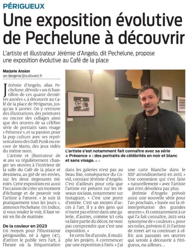 Publié le 16.11.2022 – Image du jour au lendemain du vernissage de l’exposition au Café de la Place à Périgueux.