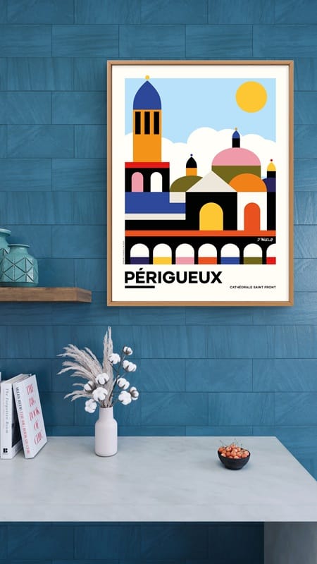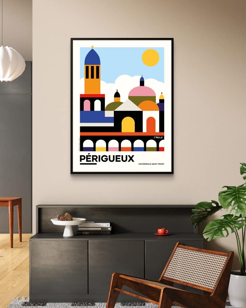Affiche de Périgueux originale réalisée par l’artiste Jérémie d’Angelo. Tirage limité par un studio d’impression de qualité à Périgueux.